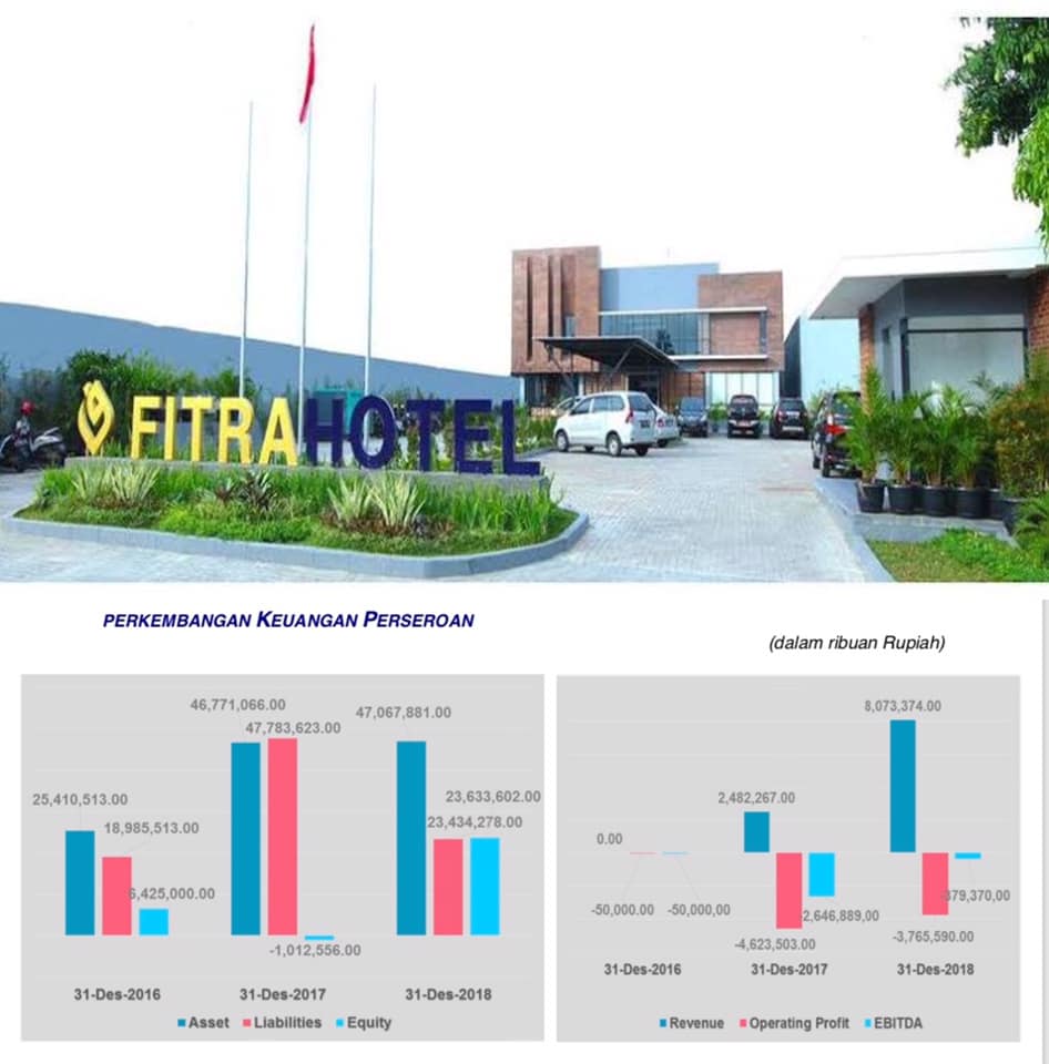 Yang menarik diperhatikan adalah keberanian para pemegang saham dan eksekutifnya. Perusahaan asal daerah, dengan berbekal hotel bintang 3 yang baru beroperasi di oktober tahun 2017, tapi melek terhadap kesempatan untuk Go Publik. Pendapatan 2018 baru 8 milyar dan hotel masih merugi. Buku keuangannya bisa dilihat di gambar dibawah ini.