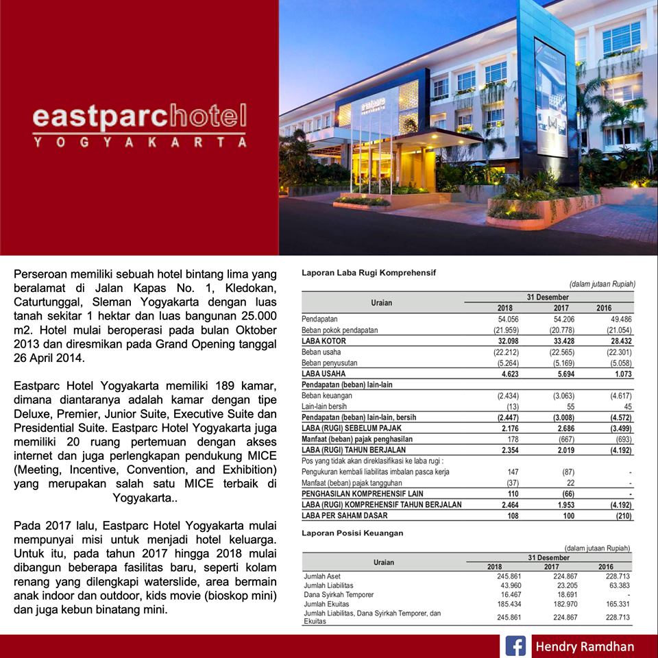Satu hotel lagi akan meramaikan bursa efek indonesia di bulan juli ini. Hotel Easparc berbintang lima yang berlokasi di Yogyakarta ini sedang melakukan penawaran umum sahamnya kepada publik.